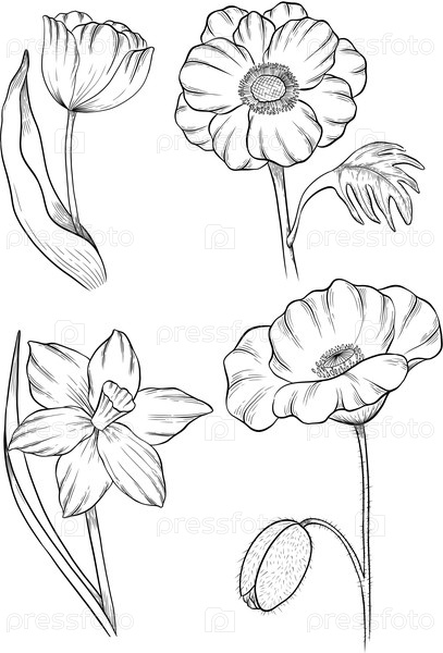 Цветочный контур набора иллюстраций