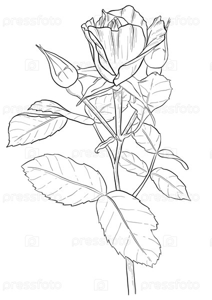 Детальное линейное искусство розы с плохими и листьями