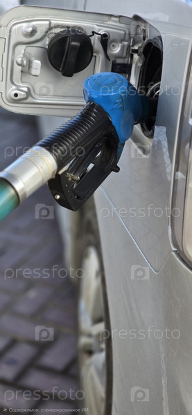Заправка автомобиля: топливный пистолет в баке