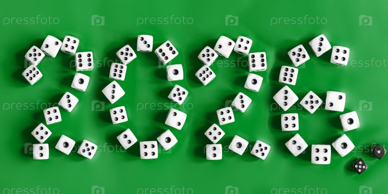 Число 2026 творчески сформировано белыми костями на ярко-зеленом фоне, символизируя удачу, случайность и новый год