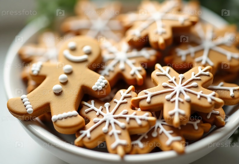 Праздничный имбирный торт обрабатывает дисплей сложных белых дизайнов мороженого, предлагая теплое и приглашающее ощущение во время радостного рождественского сезона