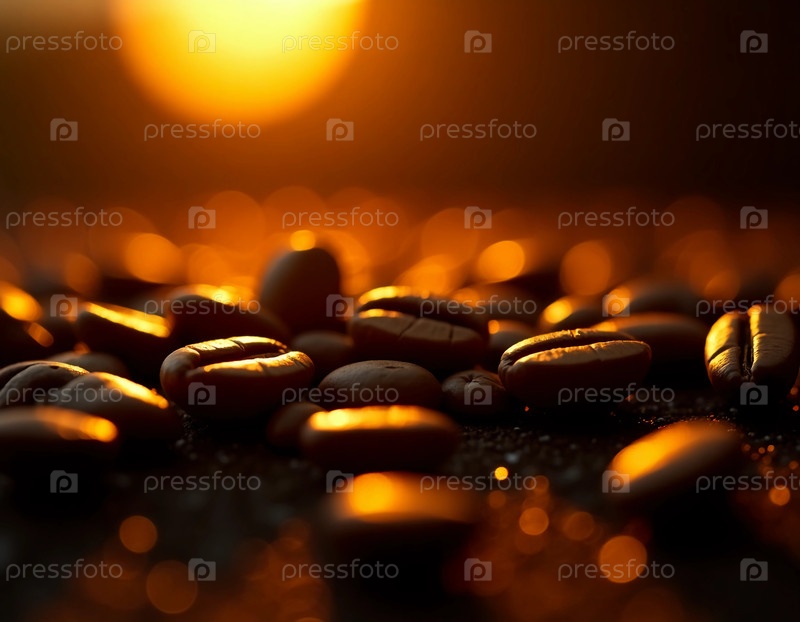 Когда заходит солнце, богатые кофейные зерна блестят золотым оттенком на деревенской поверхности, вызывая приглашающее тепло и обещание восхитительного пива перед генеративным ИИ