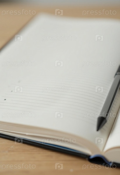 Пустая тетрадь опирается на деревянную поверхность, приглашая вдохновение и творчество. Рядом с ней лежит гладкое перо, готовое захватить мысли, заметки или эскизы в любой момент