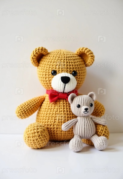 Два любящих плюшевых медведя сидят бок о бок, их мягкие вязаные текстуры и веселые выражения создают восхитительную и трогательную атмосферу в уютном пространстве генеративного ИИ