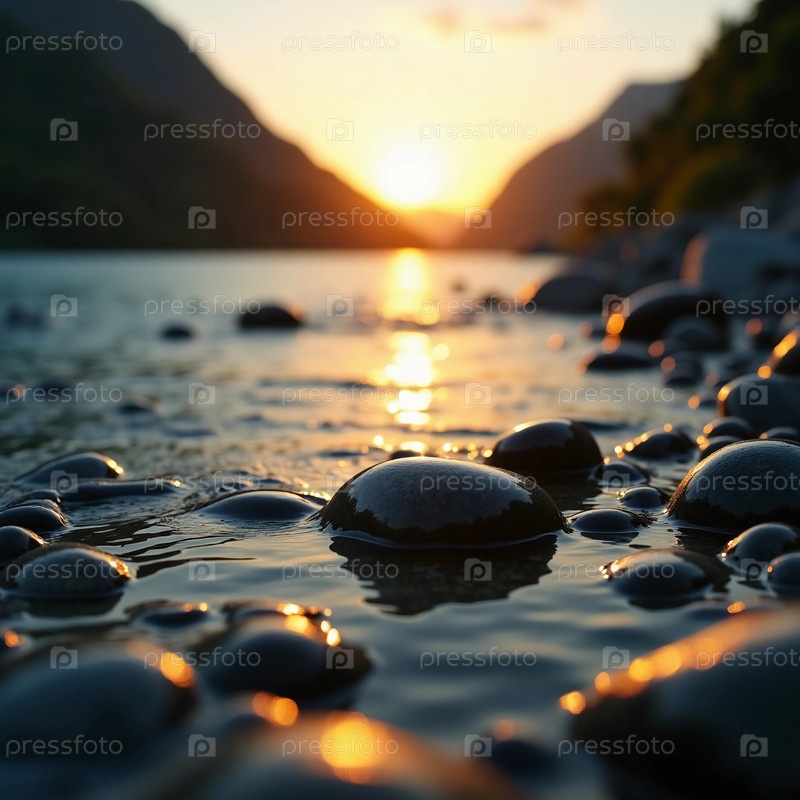 Когда восходит солнце, золотой свет танцует по воде и освещает гладкие скалы вдоль береговой линии
