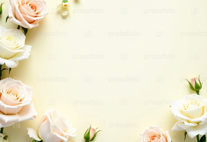 Мягкие пастельные розы украшают уголки пустого полотна, обеспечивая идеальный фон для продуманных заметок, приглашений или художественных выражений во время любого праздника