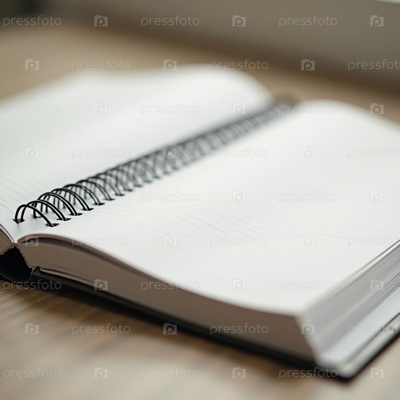 Пустой спирально связанный блокнот сидит на гладкой деревянной поверхности, освещенной мягким дневным светом, призывая идеями и размышлениями заполнить его пустые страницы генеративного ИИ