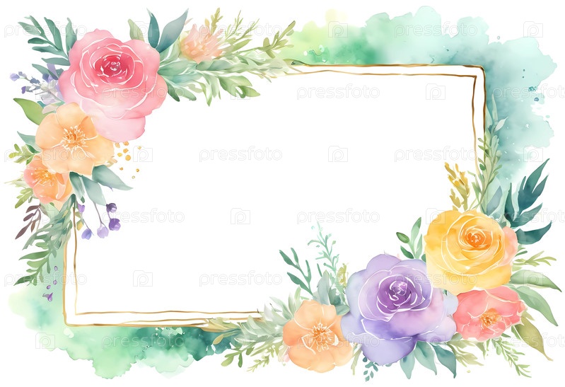 Мягкие цветы розовика в ярких акварелях окружают чистый центр, идеально подходит для персонализированных сообщений или художественных творений для специальных случаев генеративного ИИ