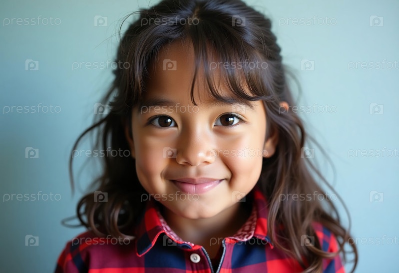 В спокойной обстановке молодая девушка из Аляски с гордостью демонстрирует свое наследие, сияющая яркой улыбкой и одетая в радостную рубашку Generative AI