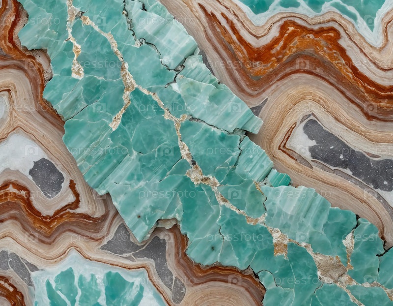 Исследуйте потрясающую текстуру Амазонского минерального камня, с яркими бирюзовыми оттенками и сложными линиями, захватывая искусство природы в ближайшем плане