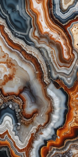Этот увлекательный агатный минеральный камень показывает потрясающее взаимодействие извилистых рисунков и богатых оттенков, иллюстрируя естественную красоту, присутствующую в геологических образованиях с течением времени