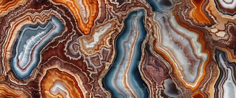 Потрясающая текстура агатового камня имеет вихри оранжевых, синих и коричневых цветов, демонстрируя естественную красоту и мастерство из глубин Земли