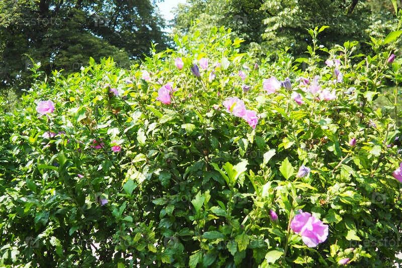 Hibiscus syriacus, Роза Шарона или сирийский гибискус - цветущий кустарник родом из Восточной Азии, выращиваемый за его розовые почти фиолетовые трубчатые цветки, и растение популярно в саду