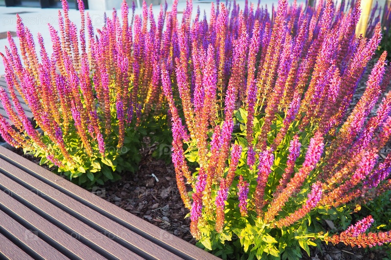 Сальвия - род многолетних травянистых растений, кустарников семейства Lamiaceae. сальвия Salvia Pratensis. фиолетовые цветы. цветки во время вечернего заката в аэропорту Вильнюса, Литва