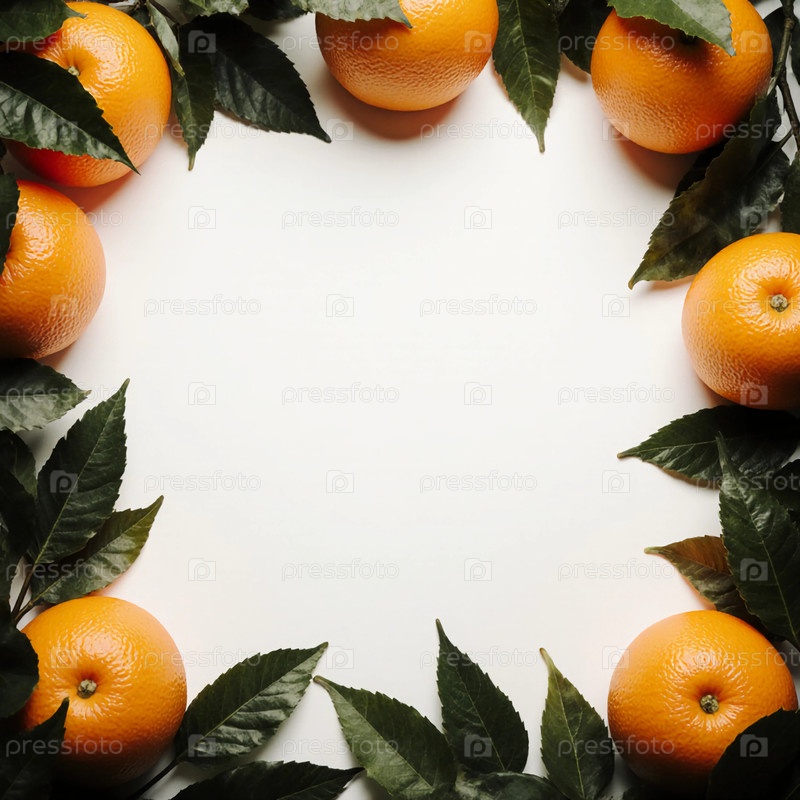 Ярко-оранжевые фрукты расположены в кругу, подчеркнутые пышными зелеными листьями, создавая визуально привлекательный дисплей, идеальный для рецептов, советов по здоровью или мероприятий на тему фруктов