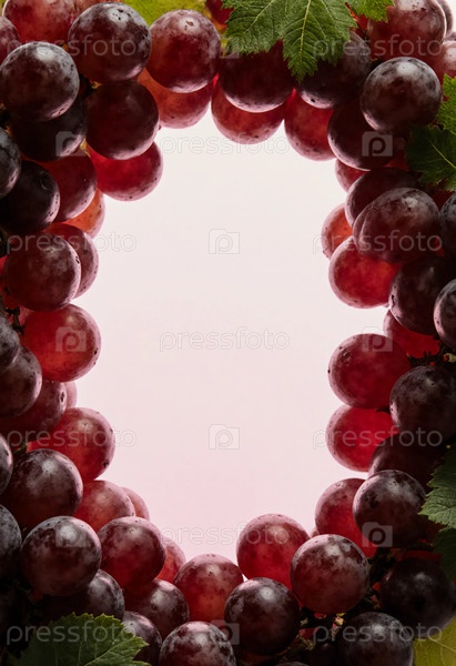 Кластеры красного винограда создают круглую раму, подчеркивая их богатый цвет и сочную текстуру.Мягкий фон улучшает естественную красоту Generative AI grapes