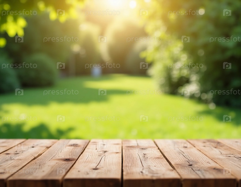 Золотые лучи солнечного света освещают очаровательный деревянный стол, расположенный в пышном саду.Это привлекательное место поощряет ужин на свежем воздухе, отдых и наслаждение спокойными моментами в природе