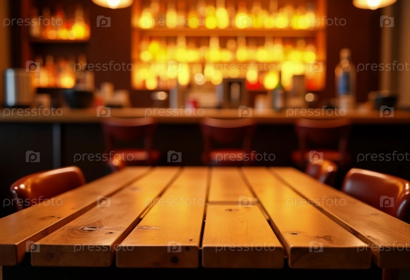 Тонко выполненный деревянный стол стоит посреди Generative AI welcome bar cafe