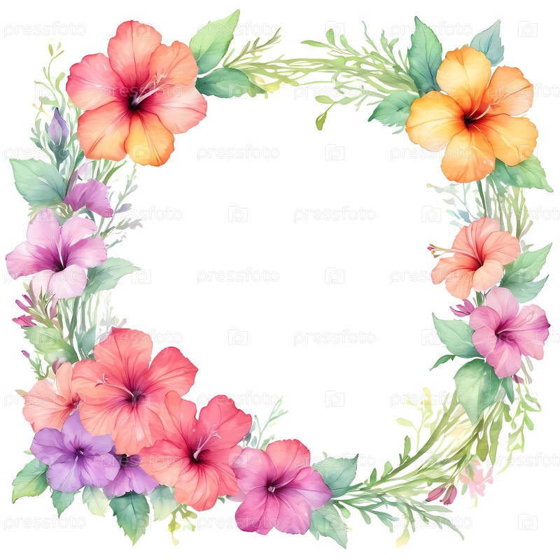 Деликатные акварели гибискуса и петунии создают красивое пустое пространство, идеально подходит для празднований и сердечных сообщений на любом особом мероприятии