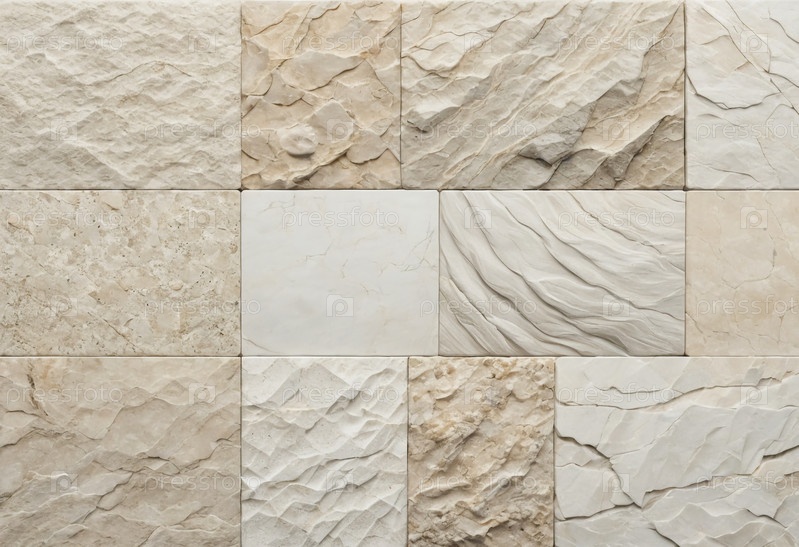 Декоративные сланцевые камни в светлых оттенках белого, серого и бежевого демонстрируют уникальные текстуры, идеально подходят для высококлассных интерьеров или художественных инсталляций Generating AI