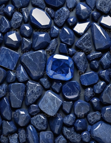 Богатые камни синего сапфира демонстрируют сложные текстуры и формы, создавая потрясающий дисплей, который захватывает сущность естественной красоты, глубины и элегантности в минеральной форме генеративного ИИ