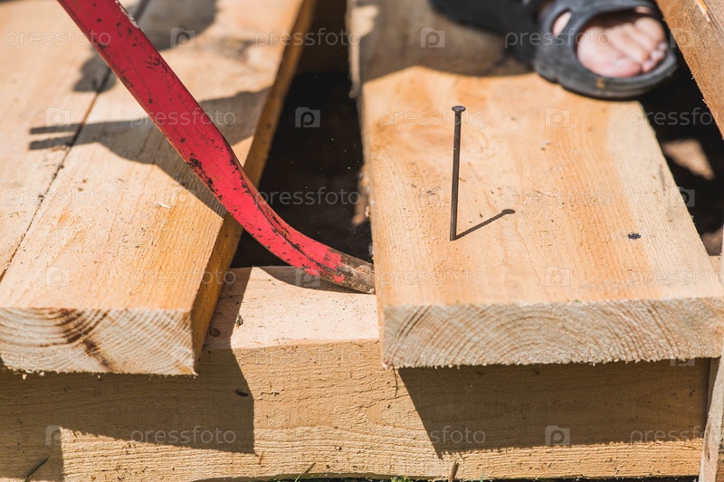 Удаление гвоздя с помощью ногтечника из деревянной конструкции.Ручные инструменты, старые строительные орудия