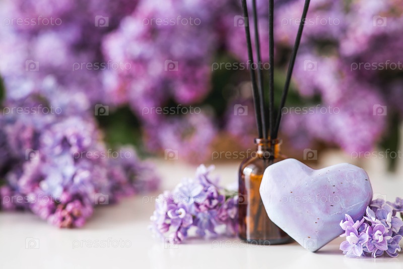 Ароматерапия, уютная атмосфера, комфорт и расслабление. Диффузор запаха. Весенний ароматический лиловый парфюм для дома в стеклянной бутылке со палками в качестве домашнего освежителя воздуха и мыла
