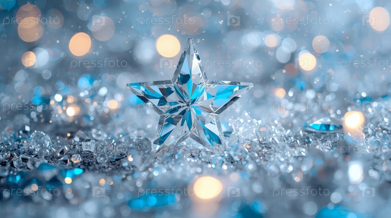 Блестящее золото, ледяные звезды и красивый боке на синем фоне.С Новым годом и Счастливыми Рождествами