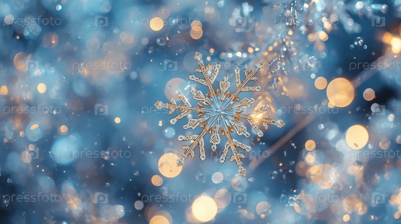 Баннер.Кристалл, ледяная снежинка на заснеженном фоне.Символ 2026 года.Счастливого Нового Года и Счастливых Рождеств