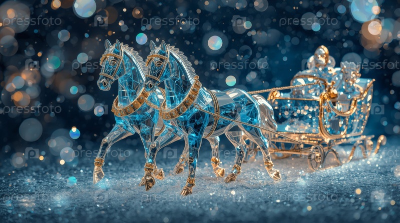 С Новым годом 2026. символ года. лошади тянут санки с Санта-Клаусом. роскошный плакат или баннер на вечеринку и новый год