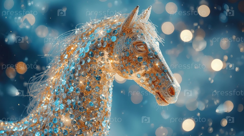 Новый год 2026. символ года. ледяной конь. роскошный плакат или баннер для вашей вечеринки и нового года