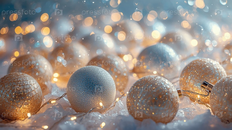 Прекрасный рождественский фон, баннер из стеклянных рождественских шаров