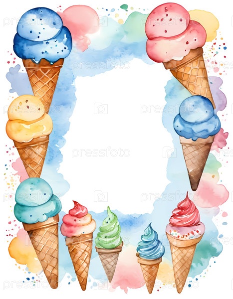 Очаровательные акварельные мороженые шишки, украшенные яркими цветами, создают идеальное пустое пространство для художественного выражения и опций настройки генеративного ИИ