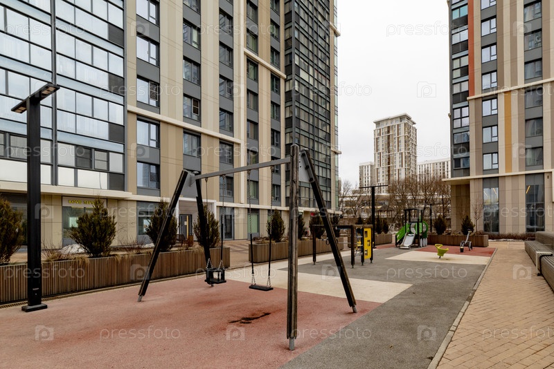 Детская игровая площадка во дворе современного жилого комплекса