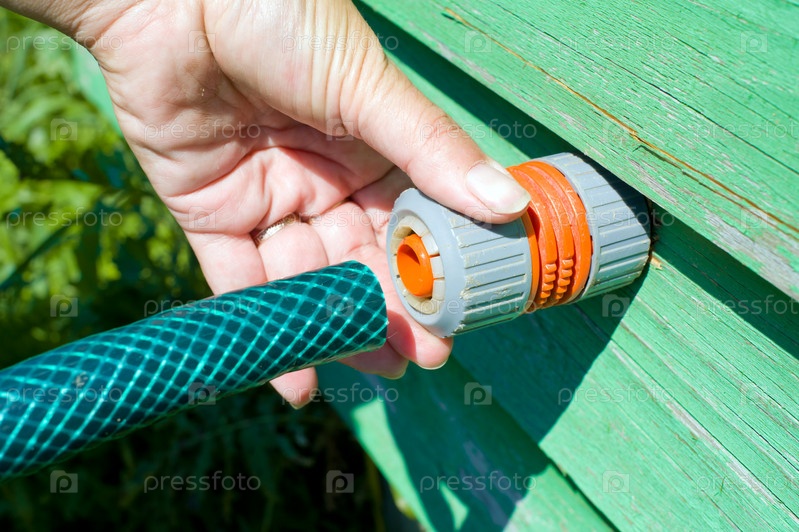 Водяной шланг, присоединяемый к муфте колодца