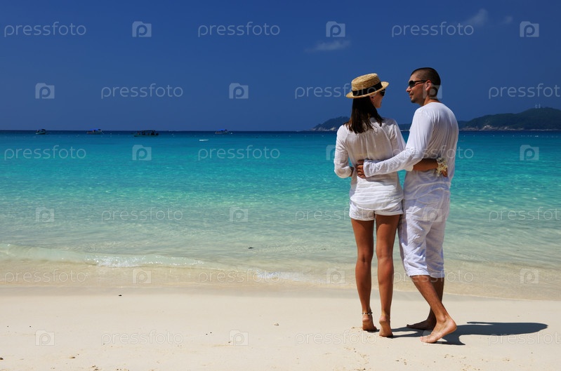 Пара в белом на пляже