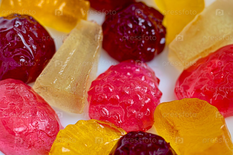 Сортированные конфеты из фруктового желе различных форм и цветов отображаются в крупном плане.Изображение захватывает яркие цвета и текстуры восхитительно сладких лакомств.Закрой