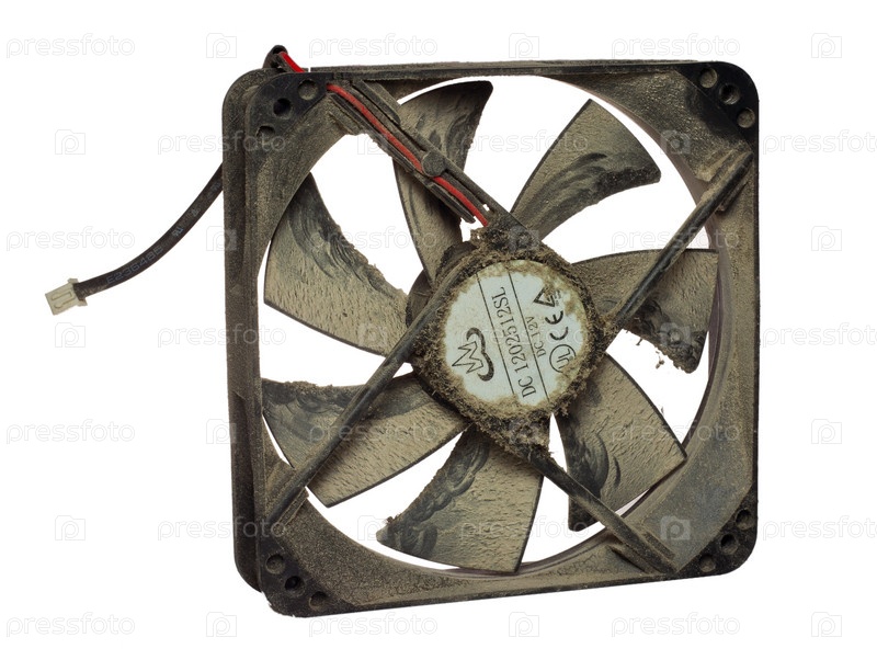 Забитый пылью компьютерный вентилятор
