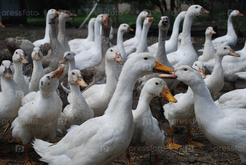 Белые гуси в деревне