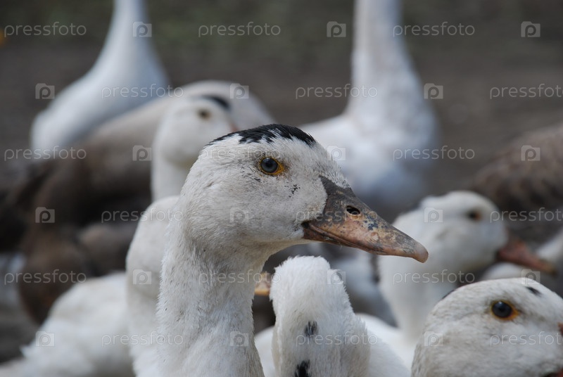 Белые гуси в деревне