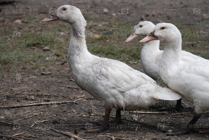 Белые гуси в деревне