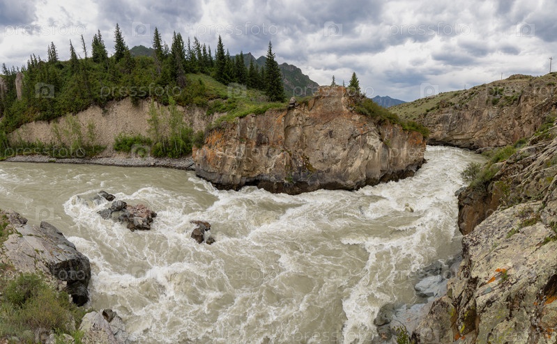 Турбиновые обочины Чуйского река в Алтайском лесу