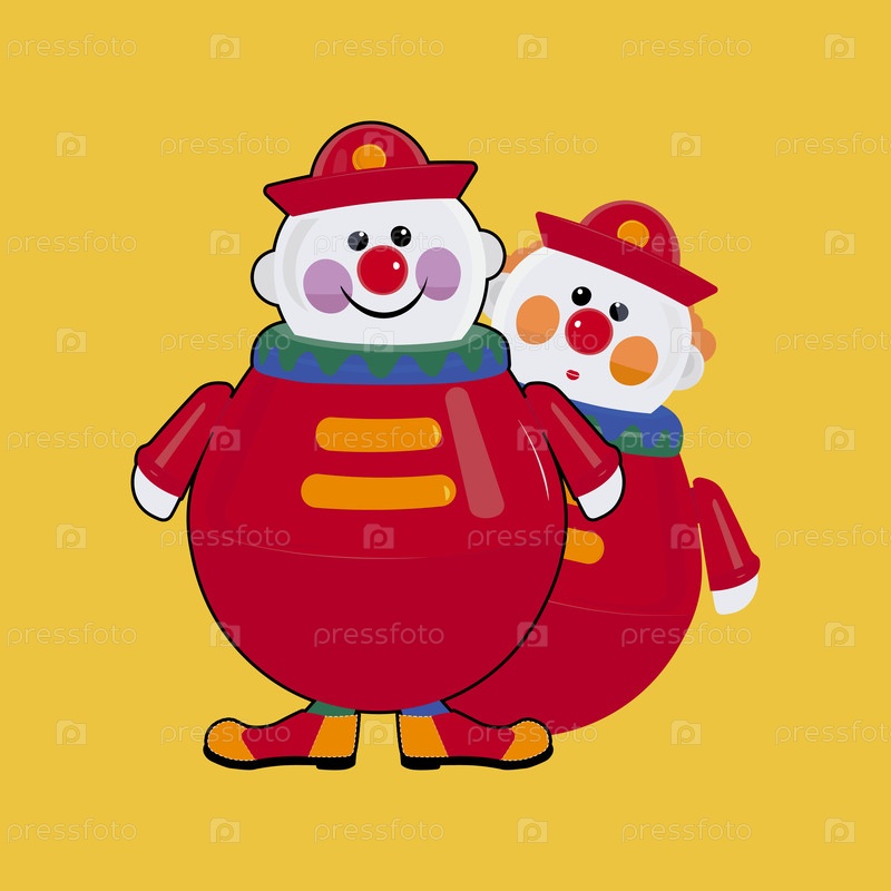 Векторный рисунок двух клоунов, изолированных на желтом фоне (роли игрушек)