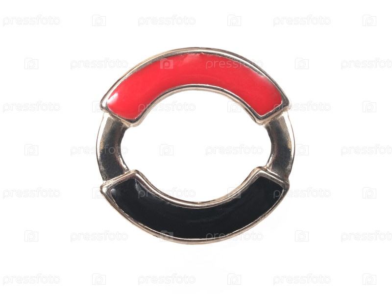Передний вид винтажного красно-черного эмалевого конечного пятна или застежки, изолированных на белом фоне