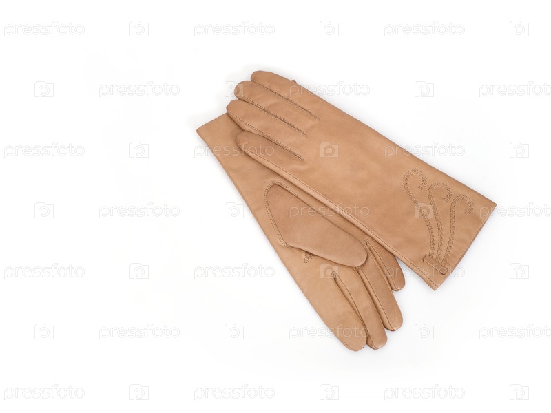 Пара бежевых женских перчаток из натуральной кожи, изолированных на белом фоне