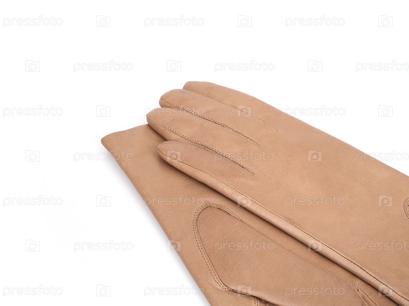 Пара бежевых женских перчаток из натуральной кожи, изолированных на белом фоне