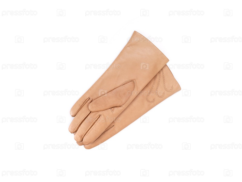 Пара бежевых женских перчаток из натуральной кожи, изолированных на белом фоне