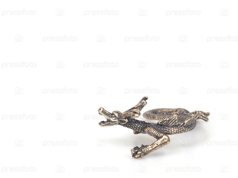 Бронзовая статуя дракона в позе S изолирована на белом фоне, вырезка готова. очень высокое разрешение