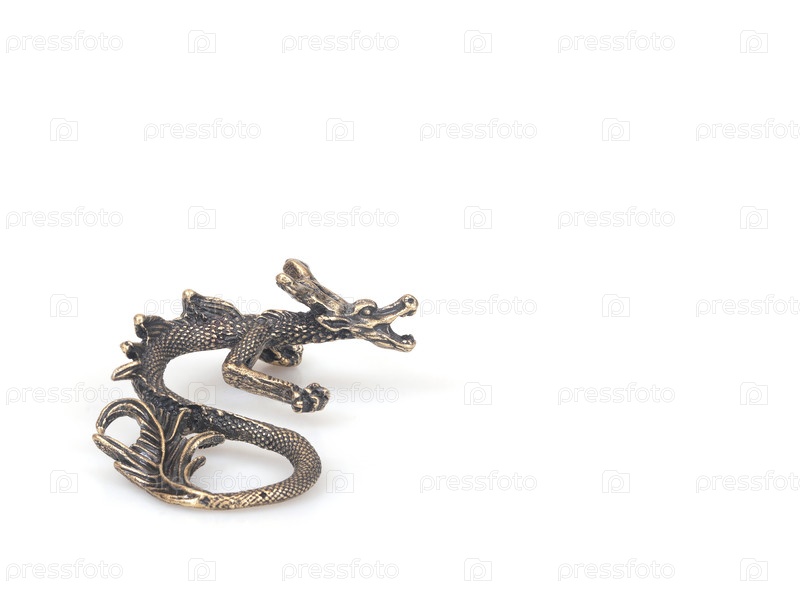 Бронзовая статуя дракона в позе S изолирована на белом фоне, вырезка готова. очень высокое разрешение