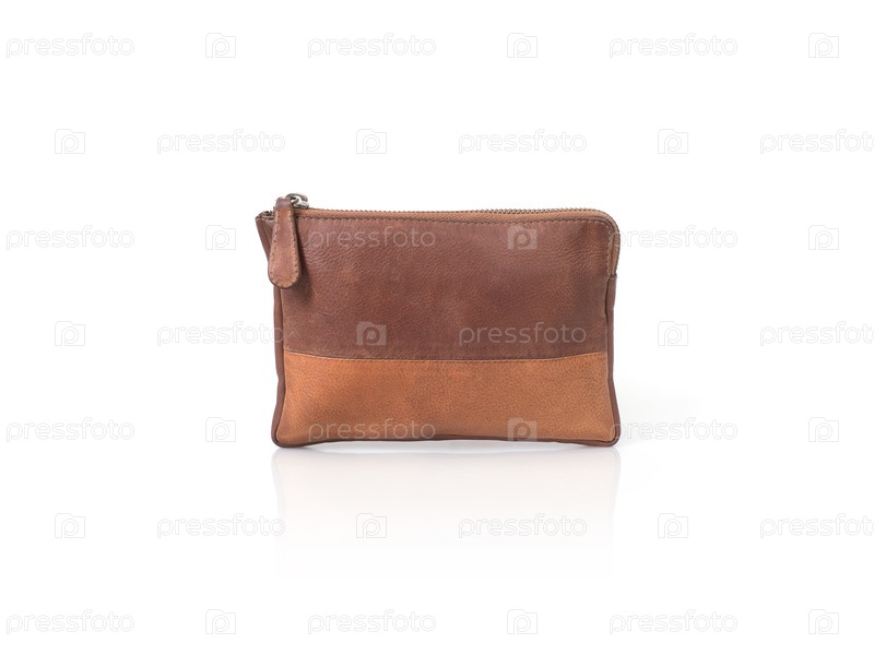 Косметическая кожаная сумка изолирована на белом фоне